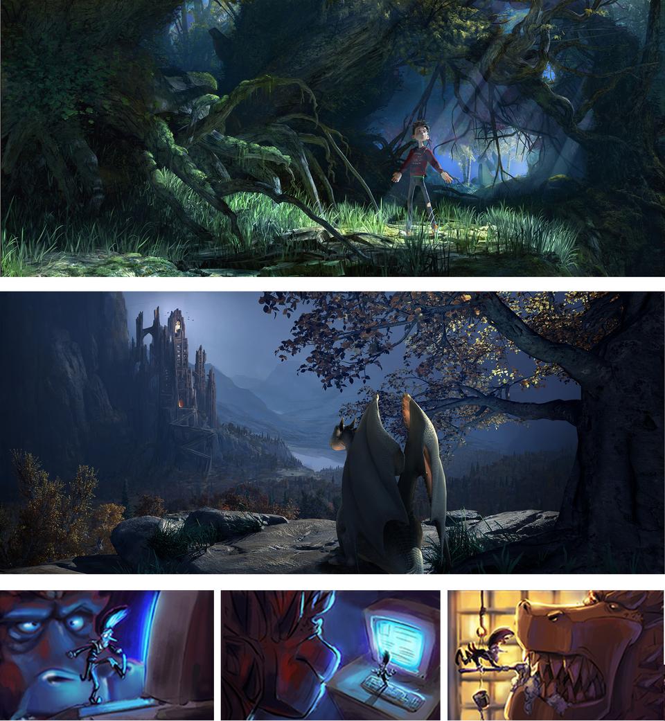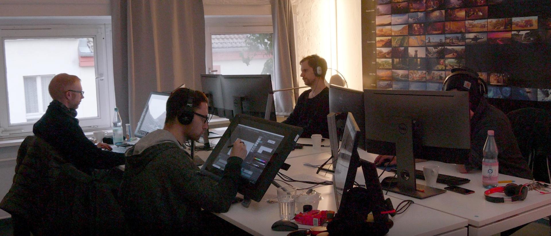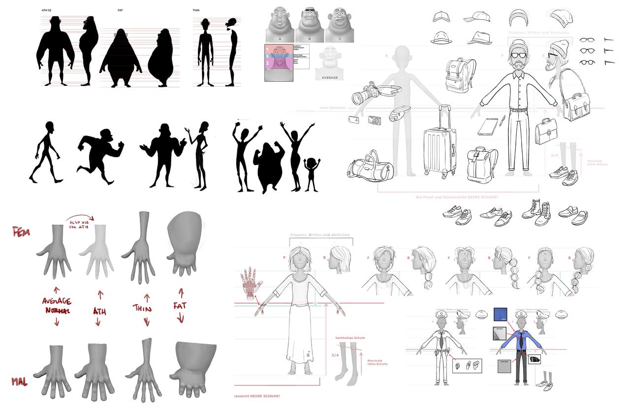 The creative goal regarding the production design was to hit the right balance between stylized and detailed designs. In order to minimize the discrepancy between stylized characters and photo-realistic set elements, the large shapes that define the space of the set were reduced to a simple, recognizable form. On the other hand, the colors in the final color script were overdrawn for each individual set from the start in order to rule out an uncanny valley effect.
