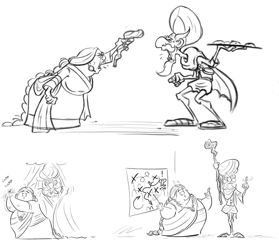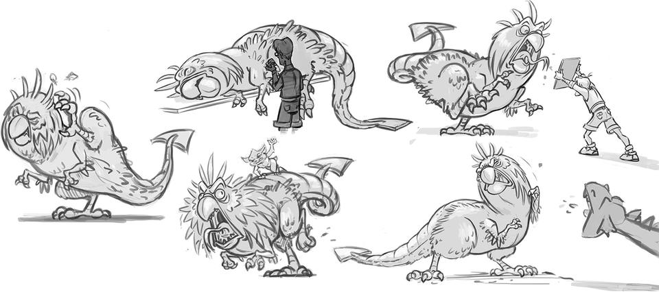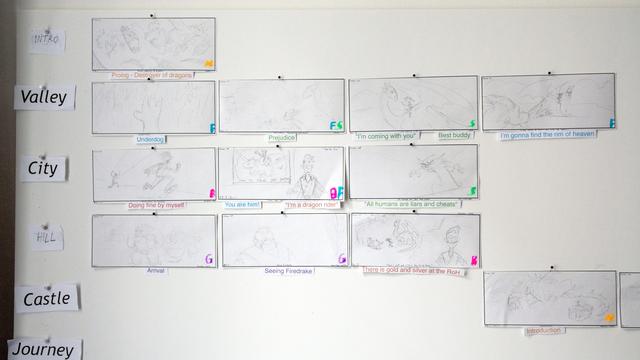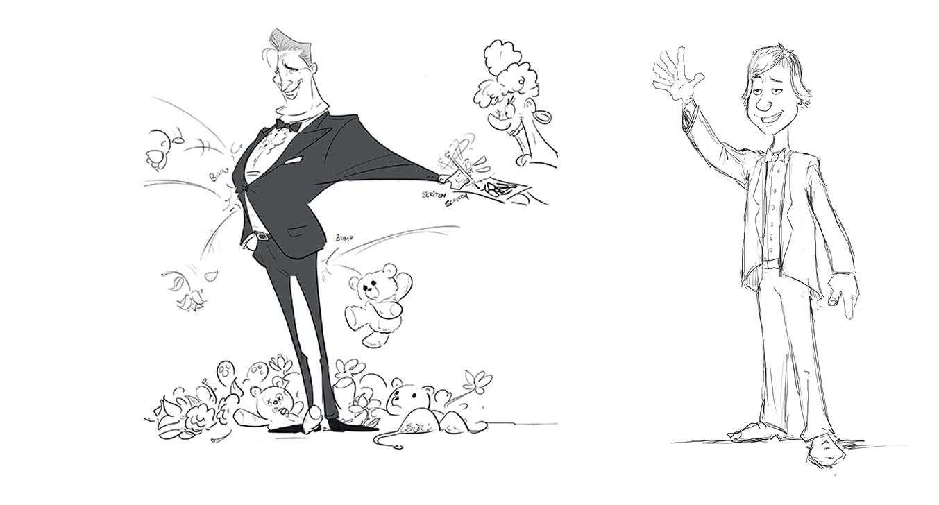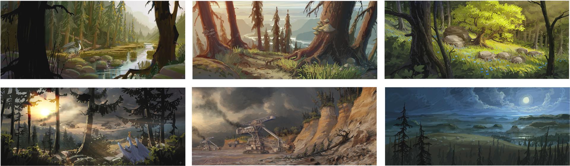 The creative goal regarding the production design was to hit the right balance between stylized and detailed designs. In order to minimize the discrepancy between stylized characters and photo-realistic set elements, the large shapes that define the space of the set were reduced to a simple, recognizable form. On the other hand, the colors in the final color script were overdrawn for each individual set from the start in order to rule out an uncanny valley effect.