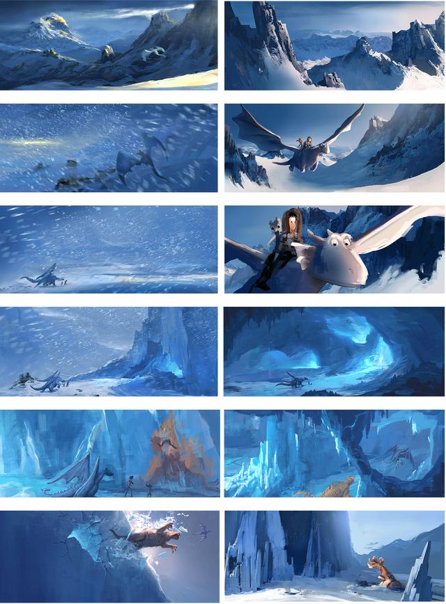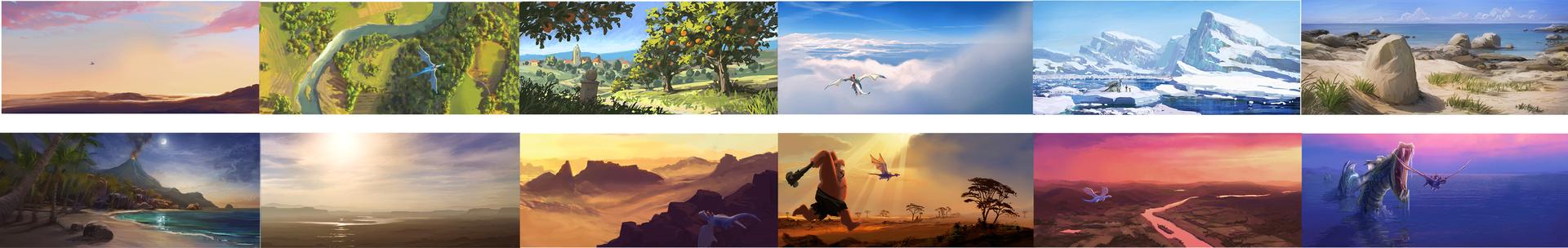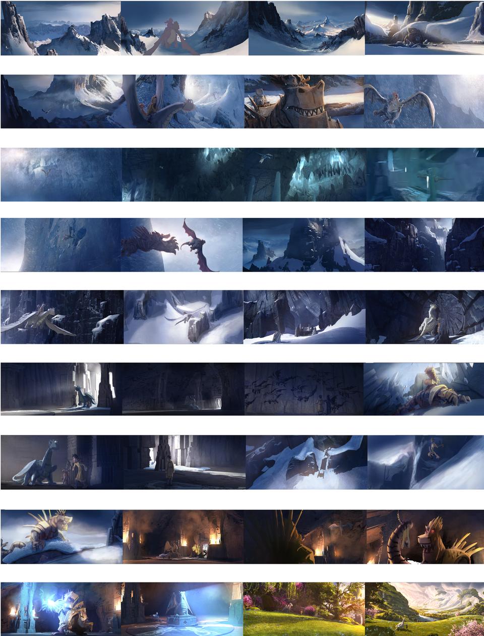 In addition to the 3D sets, over fifty matte paintings were created at Lumatic by the production design team, most of which spanning 360 degrees.