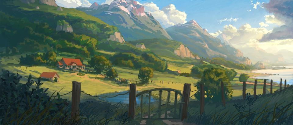 The story ends with a short sequence in which the professor's estate is shown, where he lives in harmony and contentment with his family and the mythical creatures. We see Ben, who was taken in by the professor and how they wave goodbye to the dragons on their last trip to the Rim Of Heaven. In terms of landscape, the set is based on certain coastal regions of New Zealand. The property is characterized by the American country house style.